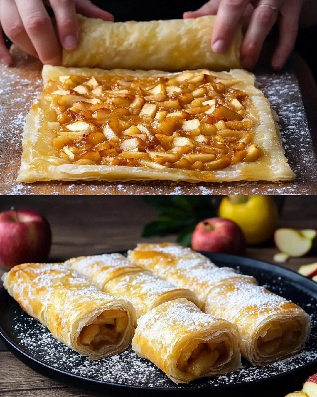 Шукаєте швидкий, ароматний та чудово хрусткий десерт? Ці яблучні рулети з листкового тіста ідеальні! Всього за кілька хвилин ви можете приготувати фруктову насолоду, яка наповнить ваш дім солодкими нотками кориці. Це ідеальне доповнення до чаю або солодке завершення трапези. Готові спробувати цей простий та неперевершений рецепт? 😋