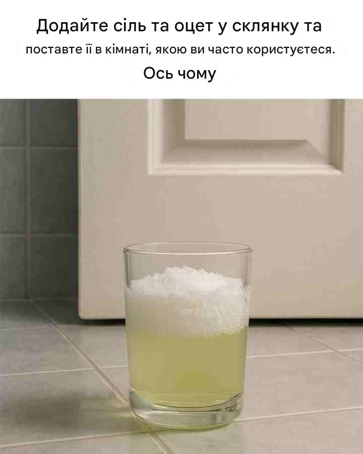 Додайте сіль та оцет у склянку та поставте її в кімнаті, якою ви часто користуєтеся. Ось чому.