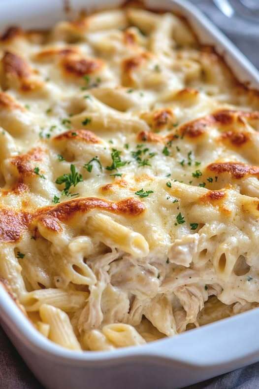 Запіканка з куркою Альфредо, перевернута та випечена