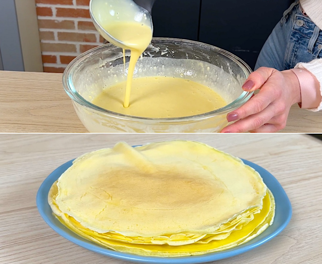 Інгредієнти: ДЛЯ ТІСТА: МОЛОКО 500 мл, БОРОШНО 250 г, 3 ЯЙЦЯ ДЛЯ ПРИГОТУВАННЯ, ВЕРШКОВЕ МАСЛО за смаком.