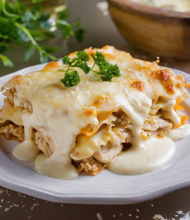 Біла лазанья в мультиварці — це чудова версія класичної італійської страви, яка пропонує всю вершкову насиченість та смак у зручному варіанті повільного приготування. Цей рецепт поєднує шари ніжної локшини для лазаньї, вершковий сир, ароматну подрібнену курку та соковитий соус альфредо, що створює ситну та поживну страву, ідеальну для будь-якої події.
