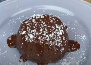 Закрити тарт4, накрити харчовою плівкою і залишити на ніч застигати в холодильнику. Після закінчення необхідного часу з’єднайте какао-порошок з гарячою водою5 і перемішайте до отримання смачного соусу. Зніміть форму з капкейків і прикрасьте їх шоколадним соусом і подрібненим кокосом. Ваш легкий шоколадний торт готовий до подачі6.