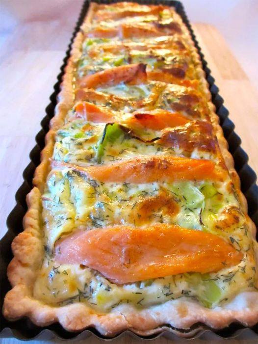 Кіш з цибулі-порею та копченого лосося — це елегантне кулінарне поєднання французької сільськості та нордичної свіжості. Ця страва на перехресті культур ілюструє зустріч землі та моря, поєднуючи міцний характер цибулі-порею з делікатесом копченого лосося. Історично кіш сягає корінням у лотарингську кухню, де простота місцевих інгредієнтів гармоніювала з вишуканою технікою приготування. Копчений лосось, зі свого боку, привносить відтінок скандинавської традиції, нагадуючи про холодні та чисті води фіордів.