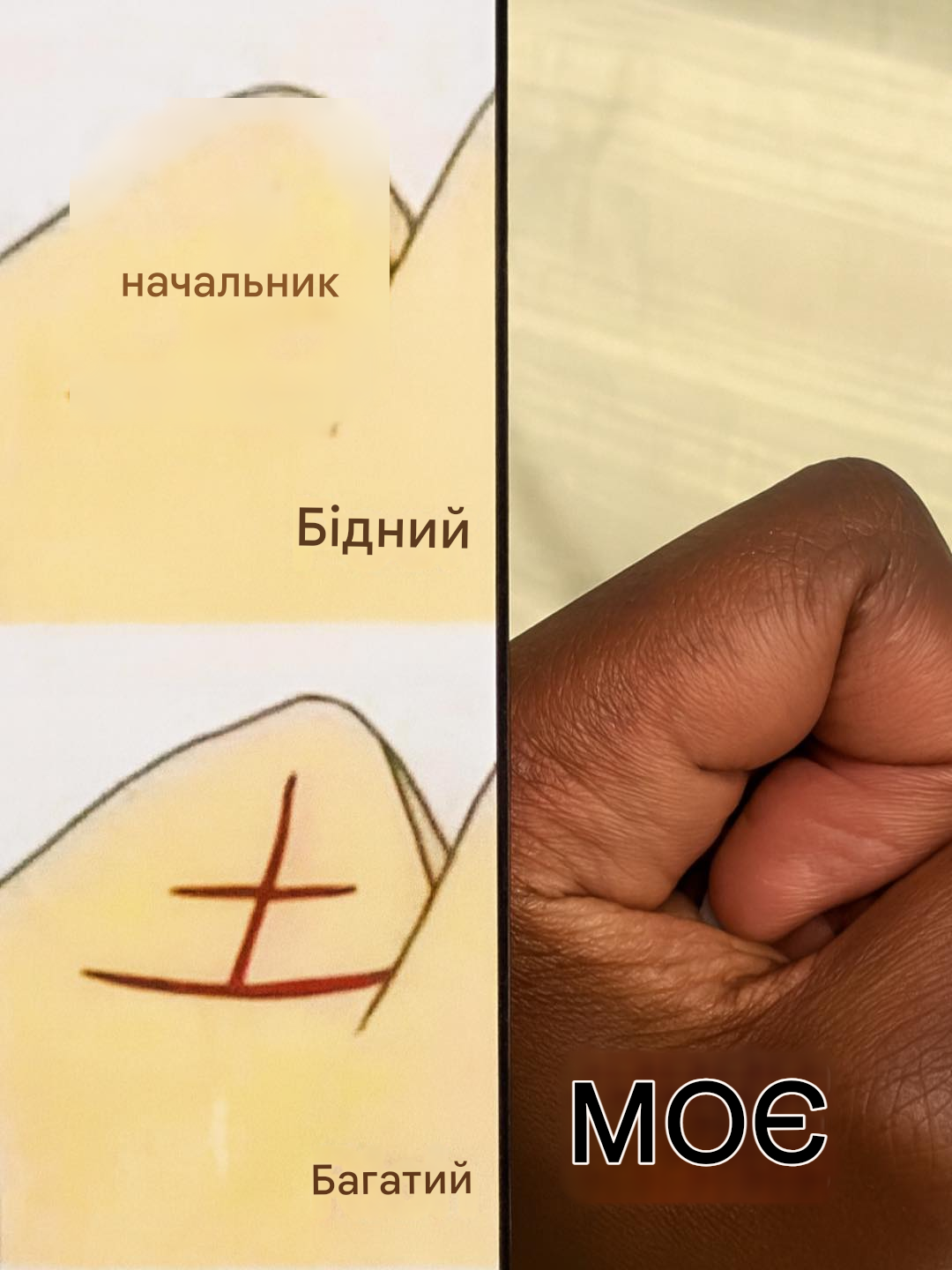 На зображенні, яке часто поширюється в Інтернеті, порівнюються дві руки: