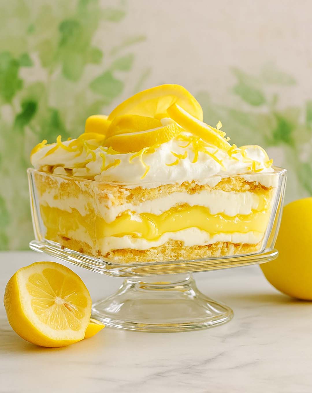 Цей рецепт лимонного тірамісу поєднує в собі насичений та ароматний домашній лимонний курд, легкий крем з маскарпоне та трохи лімончелло для тих, хто любить більш насичені смаки. Все це шарами викладено на основу з бісквітних палички, ніжно просочених лимонним сиропом. Кожен шматочок буквально тане у роті, з ідеальною гармонією між кислотністю лимона та солодкістю вершків.