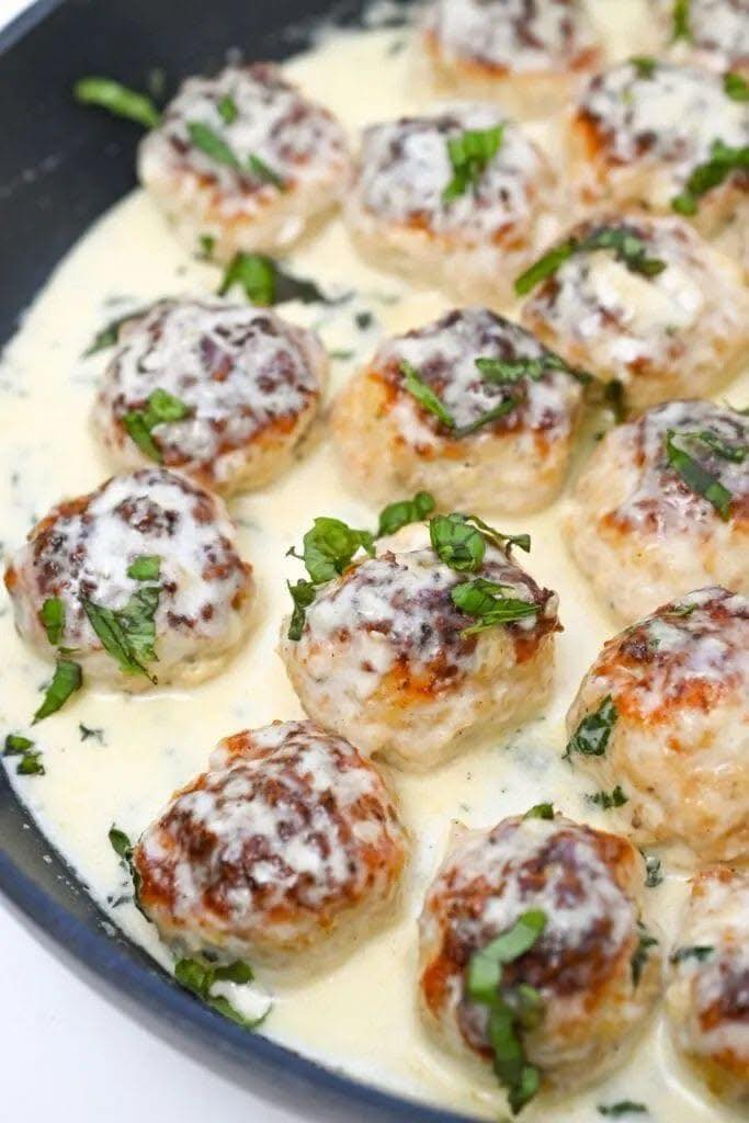 Цей рецепт – смачна та ситна альтернатива традиційній курці Альфредо. З курячого фаршу формують фрикадельки та покривають насиченим вершковим низьковуглеводним соусом Альфредо, приготованим з жирних вершків та сиру Пармезан.
