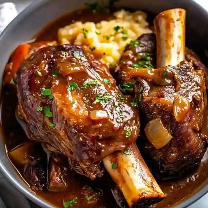 Згущення соусу: вийміть баранячі гомілки. Змішайте кукурудзяний крохмаль з 1/4 склянки води, додайте в соус і дайте йому варитися, поки він не загусне.