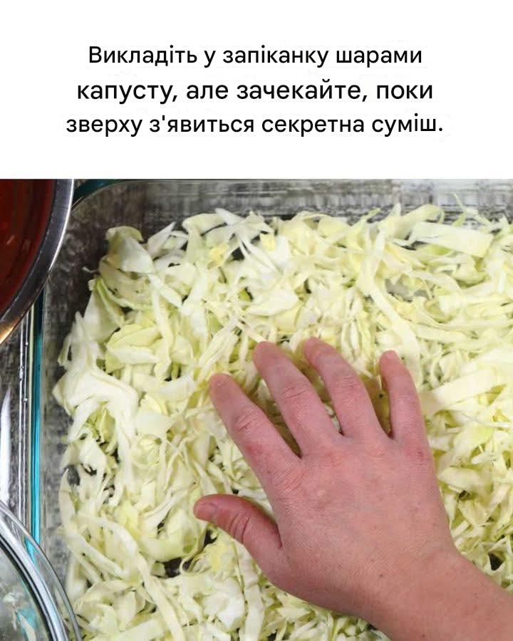 Викладіть каструлю шарами капусти, але зачекайте, поки зверху з’явиться ця чарівна суміш.