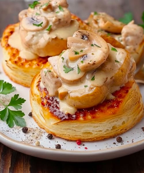 Цей рецепт ідеально підходить для особливих випадків, святкових обідів або просто для того, щоб побалувати себе вишуканою закускою, не витрачаючи години на кухні. Він поєднує легкість листкового тіста з насиченістю вершкового соусу з пасерованих грибів, доповненого цільнозерновою гірчицею та свіжою петрушкою. Ідеальний баланс елегантності та вишуканості.
