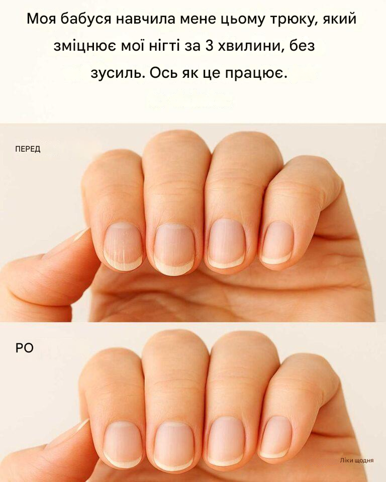 У сучасному метушливому світі догляд за собою часто відходить на другий план. Наші нігті, будучи однією з найбільш відкритих частин нашого тіла, часто страждають від цього. Вони піддаються щоденному зносу, що може призвести до крихкості та ламкості. Однак підтримка міцних і здорових нігтів не обов'язково має бути трудомістким завданням. Моя бабуся навчила мене простому трюку, який може зміцнити нігті всього за три хвилини без зусиль.
