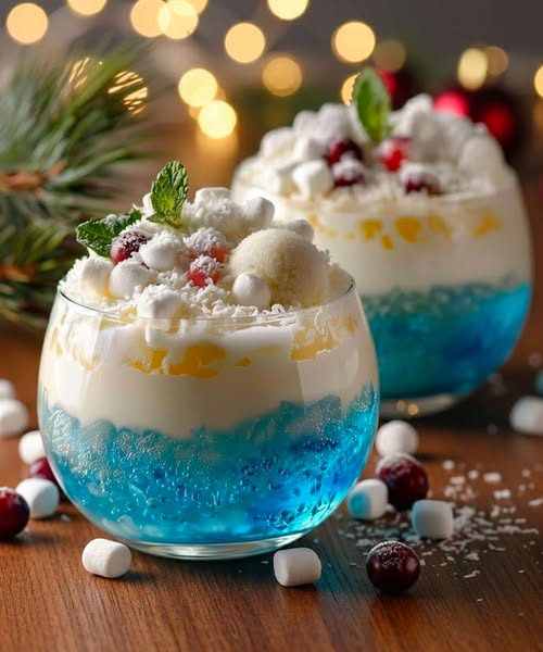 Цей напій ідеально підходить для великих зимових посиденьок, різдвяного чаювання, сніжних днів народження чи навіть новорічної ночі. Він подобається як молодим, так і дорослим завдяки своїй фруктовій основі з ананасового соку, збагаченій ніжним кокосовим молоком та газованою водою, яка забезпечує легке шипіння. Але що справді робить його особливим, так це завершальний штрих: щедрі кульки ванільного морозива, які ніжно тануть на поверхні, створюючи білу піну, що нагадує свіжопалий сніг.