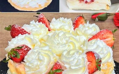 Цей смачний та простий у приготуванні торт містить шари збитих вершків та смачну полуничну начинку. 🥣 Інгредієнти Для торта: 4…