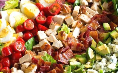 Інгредієнти: * 🥬 Салат ромен, нарізаний * 🍅 Помідори чері, розрізані навпіл * 🥚 Яйця круто, розрізані на четвертинки *…