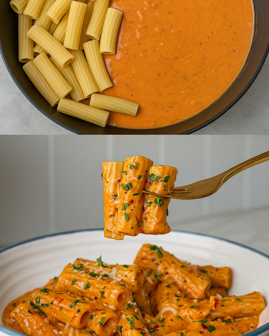 Якщо ви шукаєте просту, ароматну та ситну страву, Рігатоні з вершковим томатним соусом та травами – ідеальний вибір. Завдяки текстурі al dente, насиченому, ароматному соусу та ідеальному балансу стиглих помідорів і свіжих трав, ця страва втілює щедрість італійської кухні в її найавтентичнішій формі. Необхідні інгредієнти