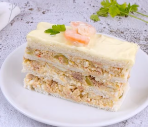 Для бутербродного торта можна використовувати будь-які свіжі інгредієнти.