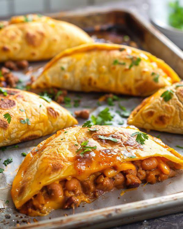 Шукаєте швидку та ситну страву, яка буде сповнена смаку? Кишеньки з печеної ковбаси, сиру та печеної квасолі – це саме те, що вам потрібно. Ця ситна страва поєднує в собі пікантність ковбаси, насичений комфорт печеної квасолі та кремовий розплавлений сир, все це щільно загорнуто в м’яку тортилью. Це як міні-пікнік у кожному шматочку, що приносить радість вашій кухні з кожною порцією.
