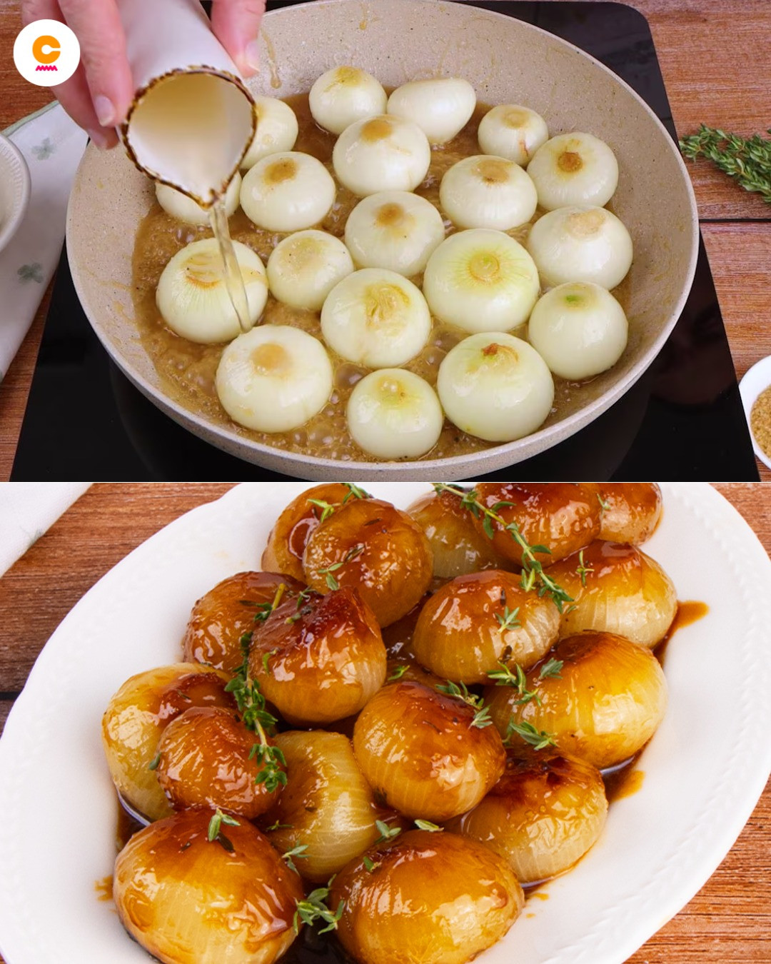 У нашому рецепті цибуля бореттане, яка характеризується типовою сплющеною білою цибулиною та ніжним смаком, розм’якшується в каструлі з маслом та коричневим цукром, потім змішується з яблучним оцтом і готується під кришкою приблизно 30 хвилин або до готовності та легкої карамелізації. Ця страва пропонує приємний контраст смаків, ідеально підходить для основної страви або як аперитив, разом із ароматною брускетою та тарілкою в’яленого м’яса та сирів, як свіжих, так і витриманих.