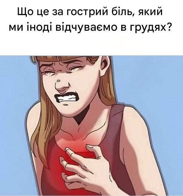 Це відчуття часто описують як різкий, короткий, але інтенсивний біль у грудях. Він може виникати у стані спокою, під час активності, під час дихання або навіть без видимої причини. Дивно, чи не так?